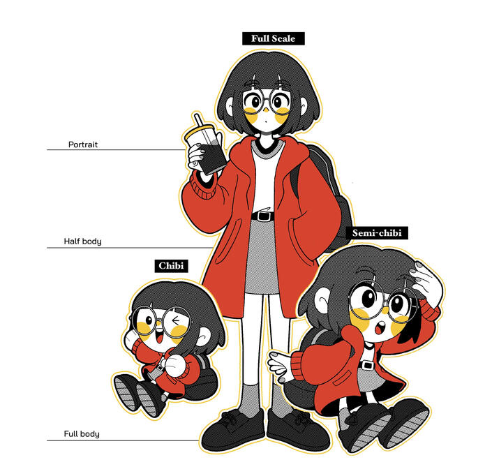 ภาพประกอบสไตล์น่ารัก ตาจุด หัวโตตัวเล็ก